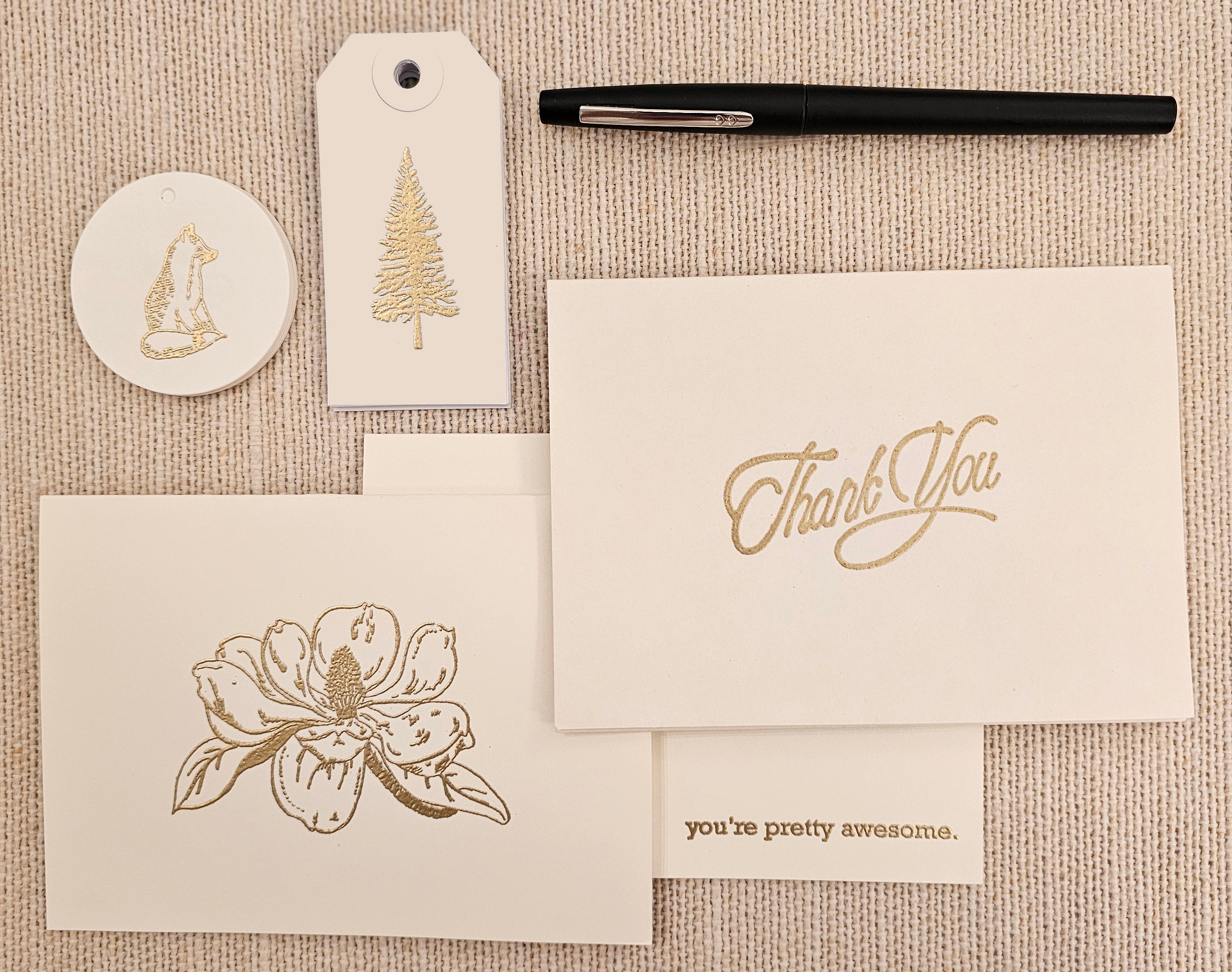 Magnolia Cards 5/pk - Gold Embossed